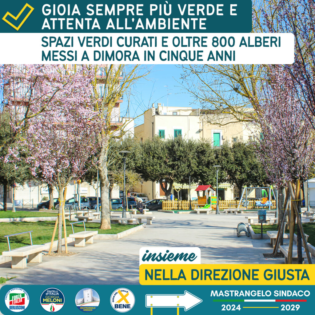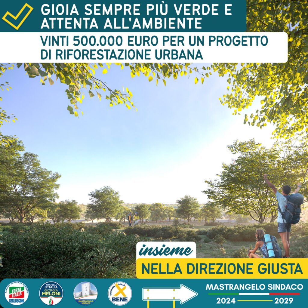 A queste azioni importanti si aggiunge l’attuazione del progetto di riforestazione urbana, che sta interessando le aree di masseria Didonna e dell’ex discarica in contrada Terzi.
